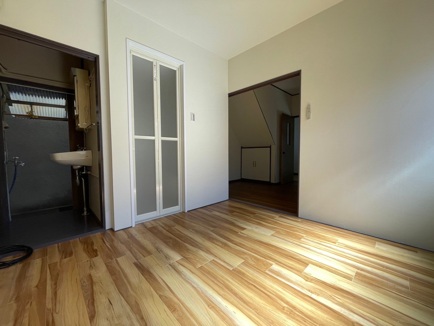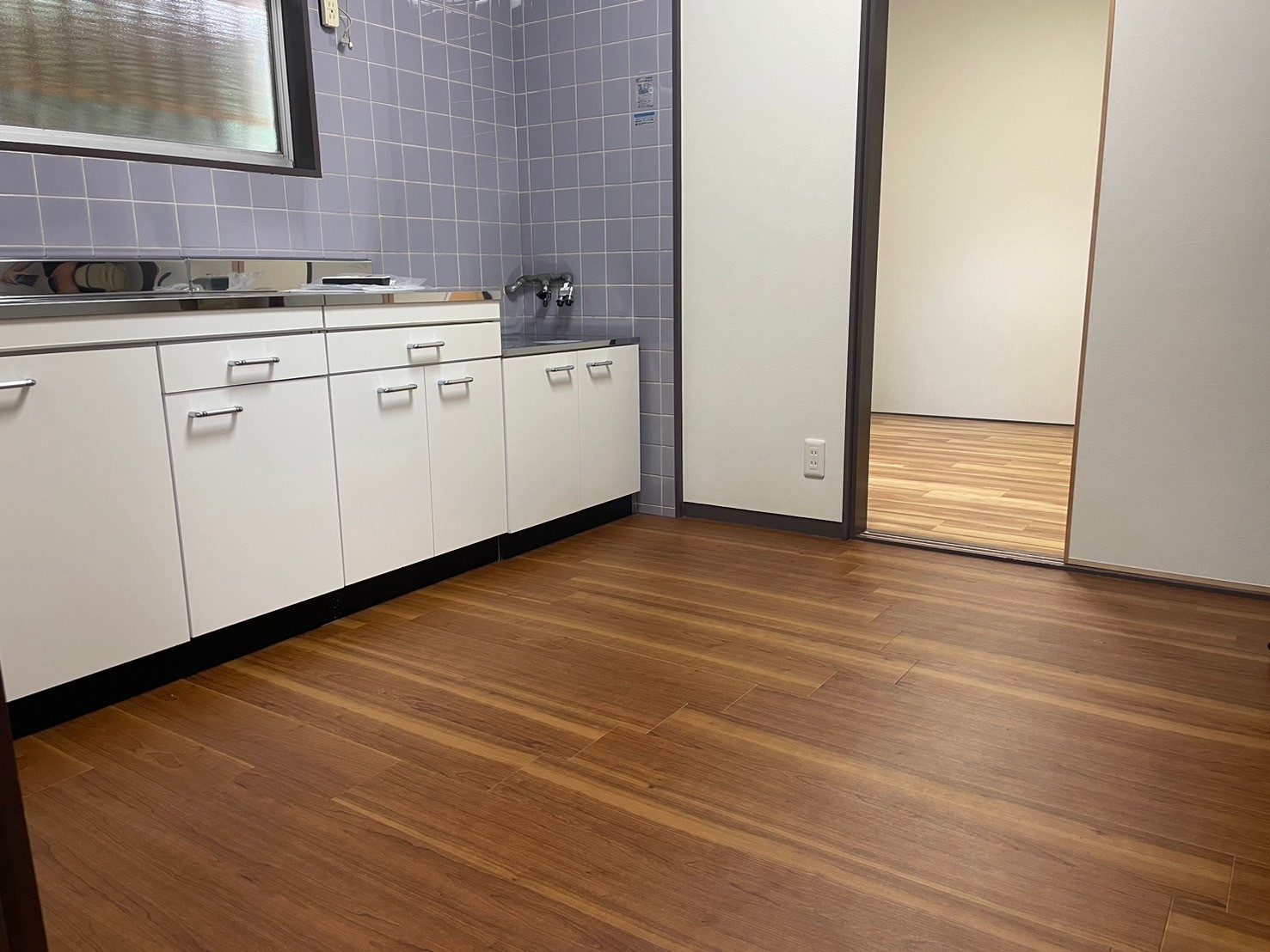 工期は約1か月となります。外壁塗装(正面のみ)・畳の部屋を洋室に変更・キッチン入れ替え・和室の押入れを解体し、ユニットバスを